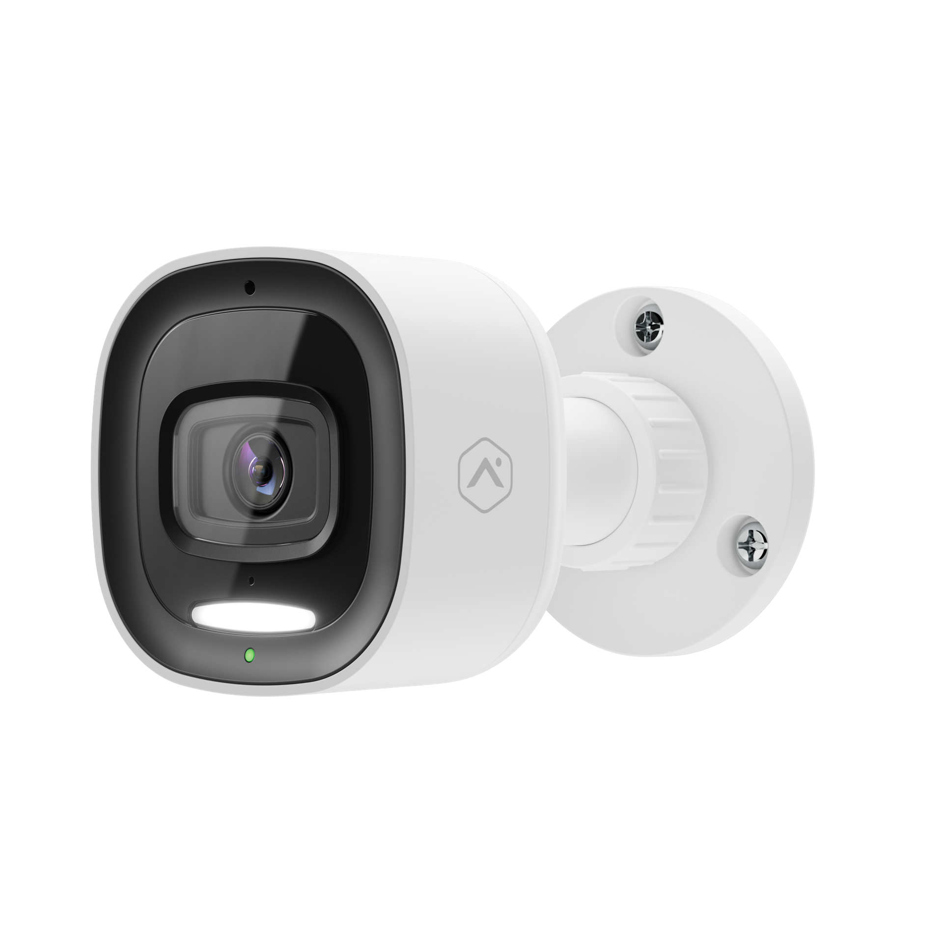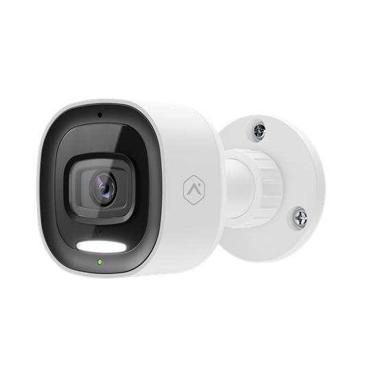 The V730 from Alarm.com is an outdoor 4MP WI-FI bullet camera. It features an integrated spotlight for color night vision and two-way audio for direct interaction. It supports onboard encrypted MicroSD recording (up to 1 TB) plus advanced detection for people/vehicles/animals, and customizable light/audio deterrence, all in an IP66-rated housing for outdoor resilience.