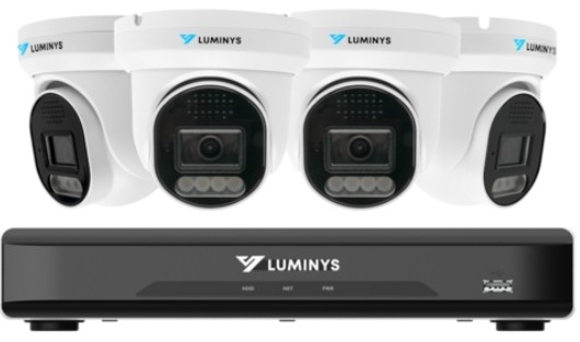 The K54-4L1A2 from Luminys is a 4-channel video surveillance kit with a 4K NVR with a 2 TB HDD and 4- 5 MP LumiLuxLite PoE turret cameras, ideal for small to mid-sized commercial video security. It offers plug-and-play PoE connectivity, integrated IR and white-light illumination for clear day/night imaging, and intuitive remote viewing via the LumiViewer app. NDAA-compliant and engineered for seamless system integration, this kit delivers reliable, high-resolution monitoring.