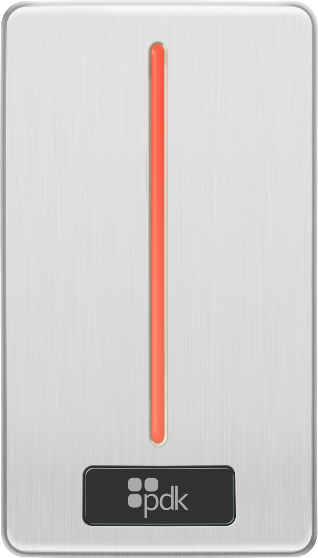 The RDRSR from PDK is a stainless-steel mullion-style proximity reader built for rugged indoor and outdoor access control environments, supporting 125 kHz credentials with a 26 to 37‑bit Wiegand output. Rated IP67, it resists harsh weather and vandalism while offering up to a 1.8″ read range.